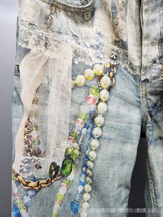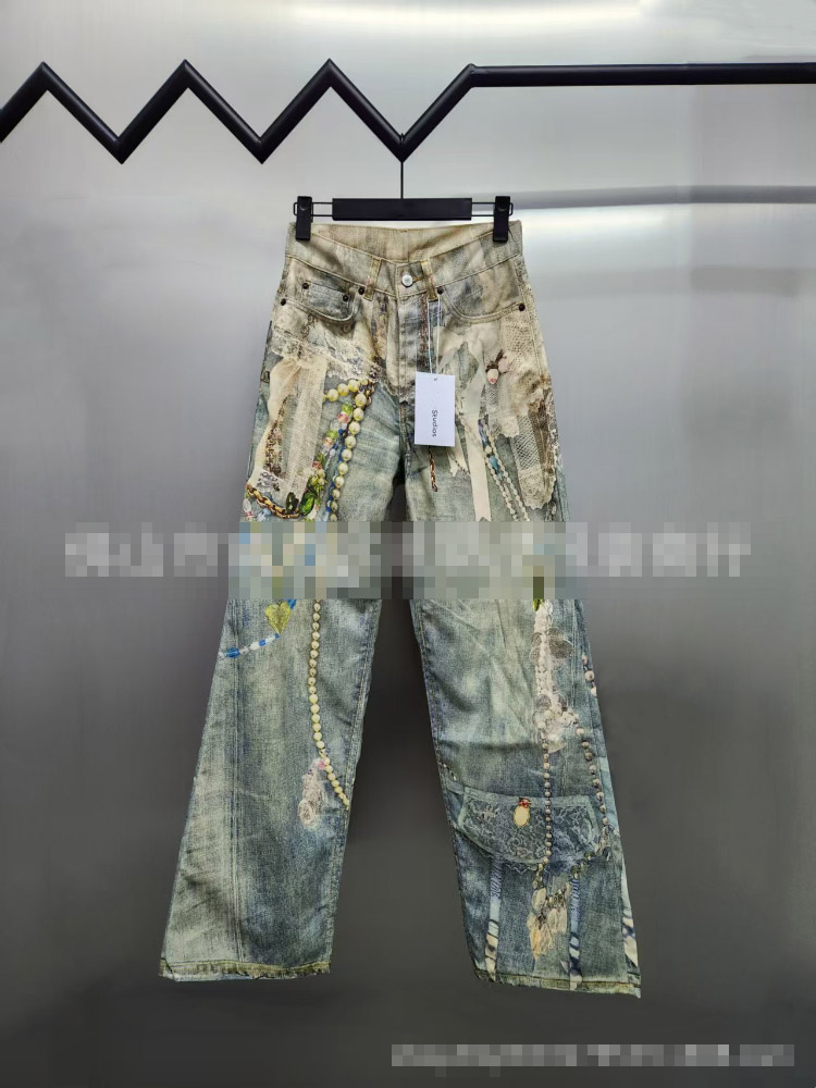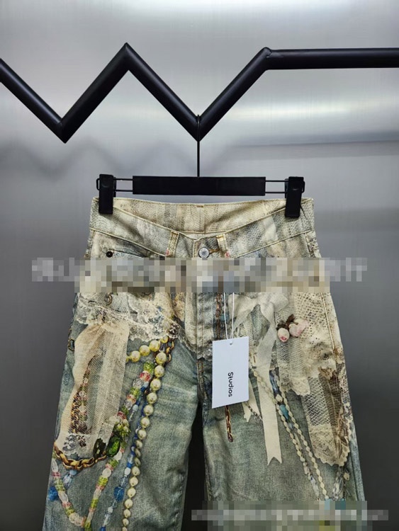 Home > Acne Studios 1981 Series 3D Lace and Pearl Chain High-Waisted Jeans-5458
