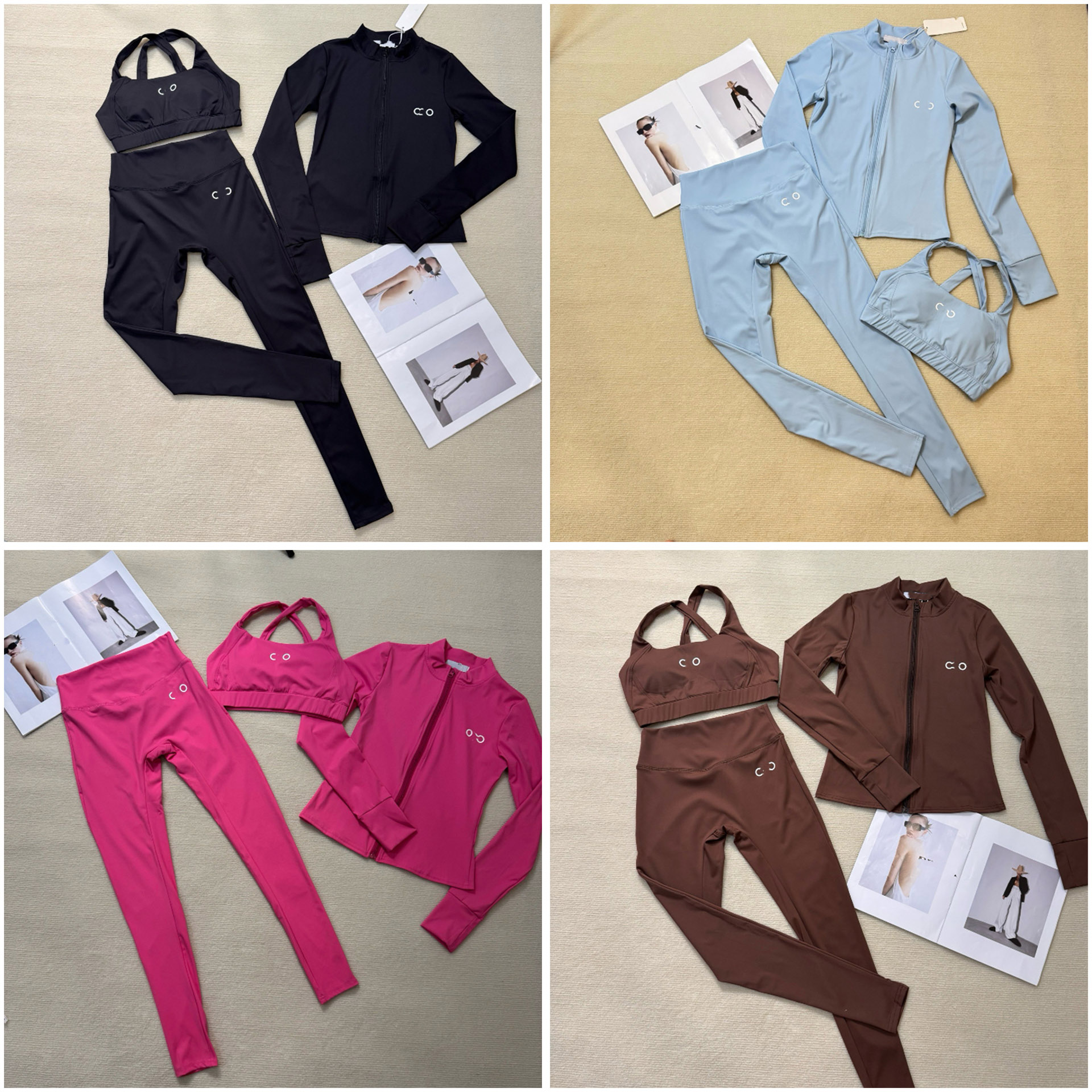 ALO new contrasting color embroidered zippered yoga and workout set-5367