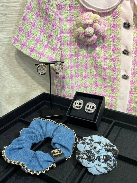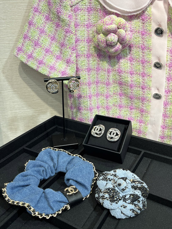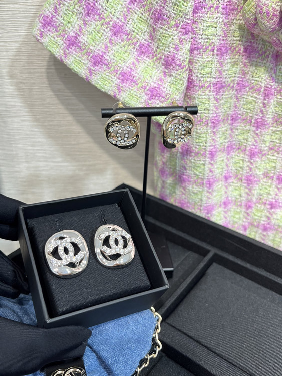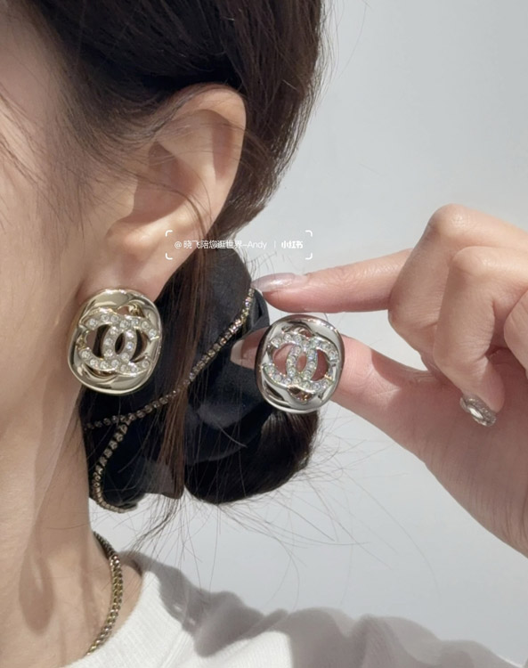 Celine silver full diamond double C hollow square earrings-3901