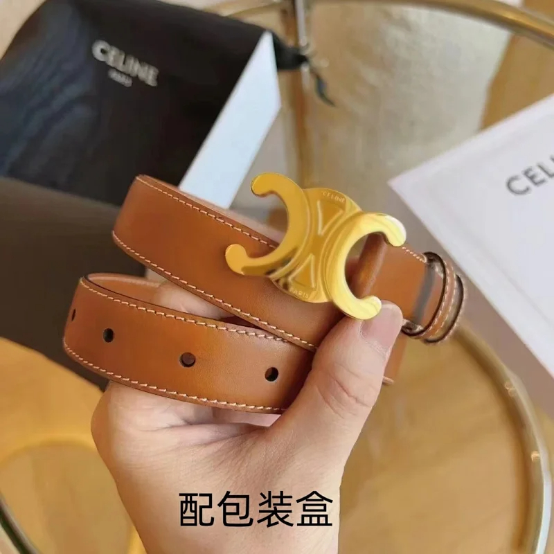 Home > Celine with a gold buckle leather belt-4720