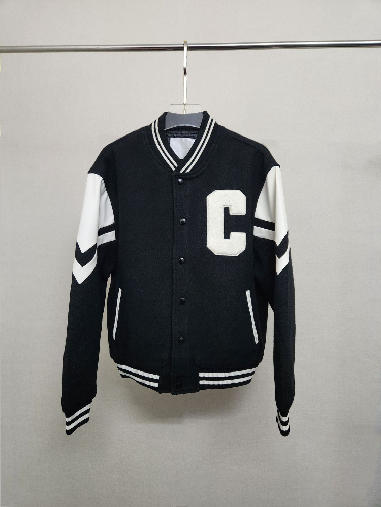 Celine Wool Classic Loose-Fit Baseball Jacket-5477