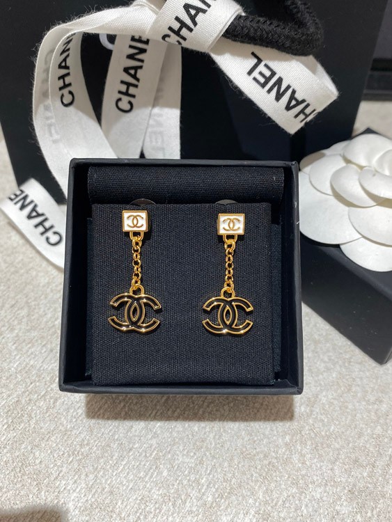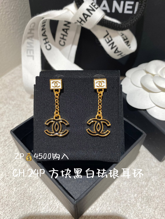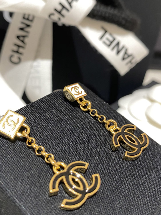Chanel black and white enamel square double C earrings-3952