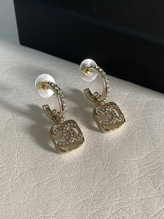 Chanel hollow rhinestone square earrings-3951