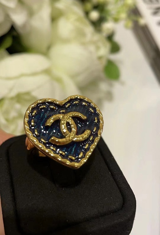 Chanel vintage gold double C denim pattern love ring-3738