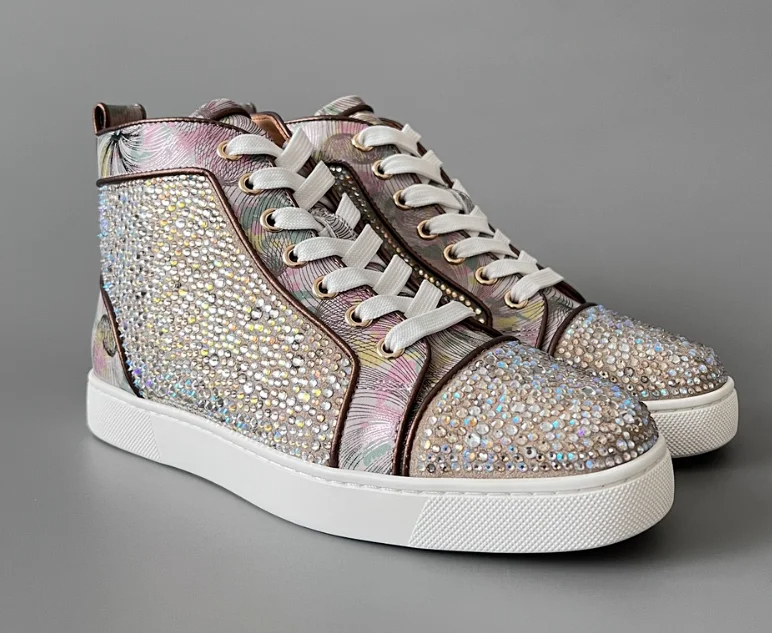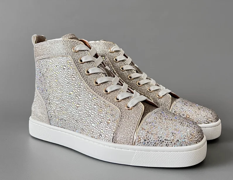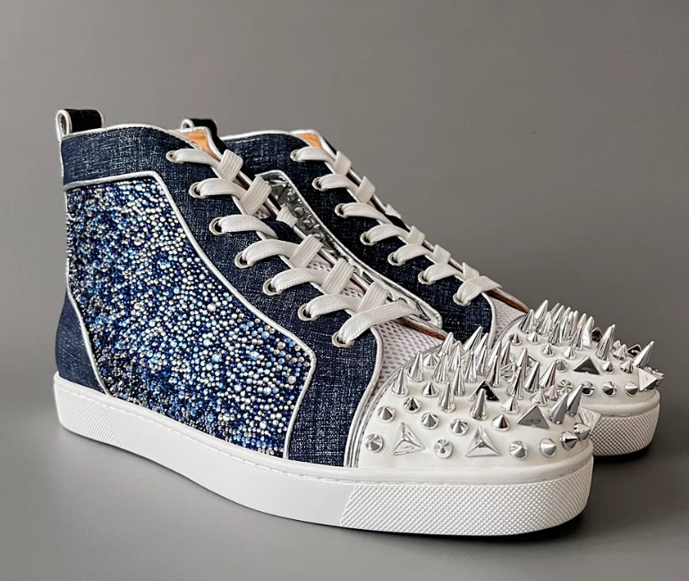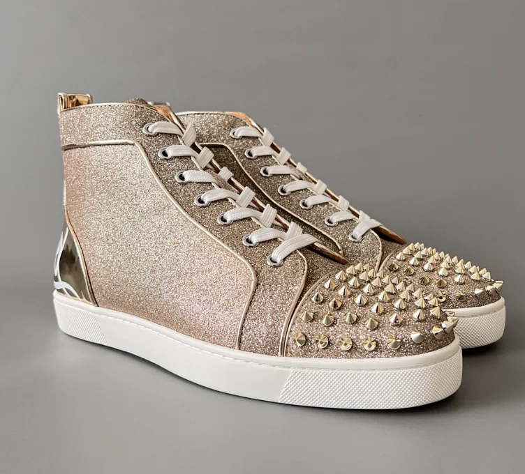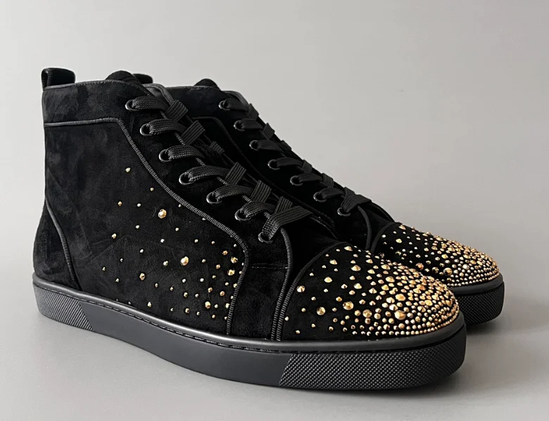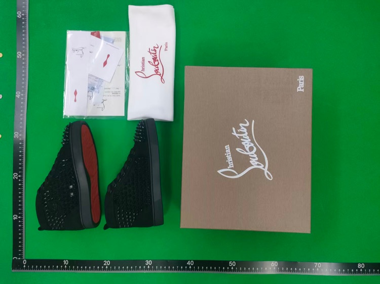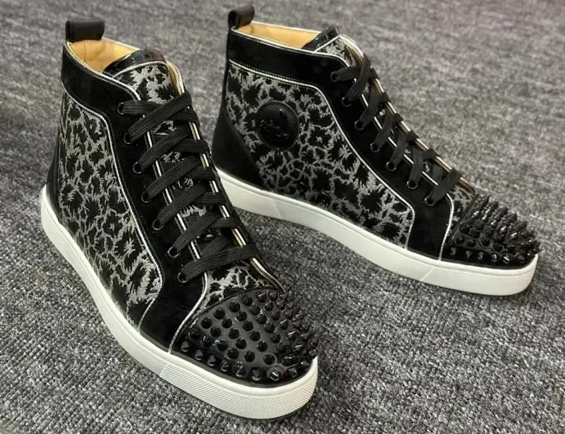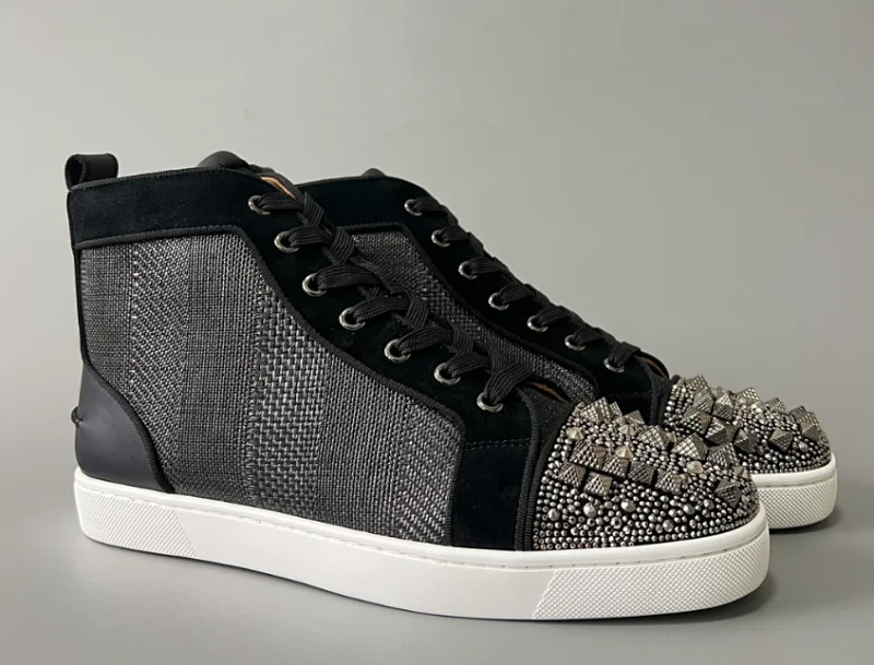 Christian Louboutin CL calfskin round toe lace-up high-top sneakers-2963