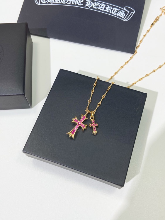 Chrome Heart Diamond Cross Necklace-3569