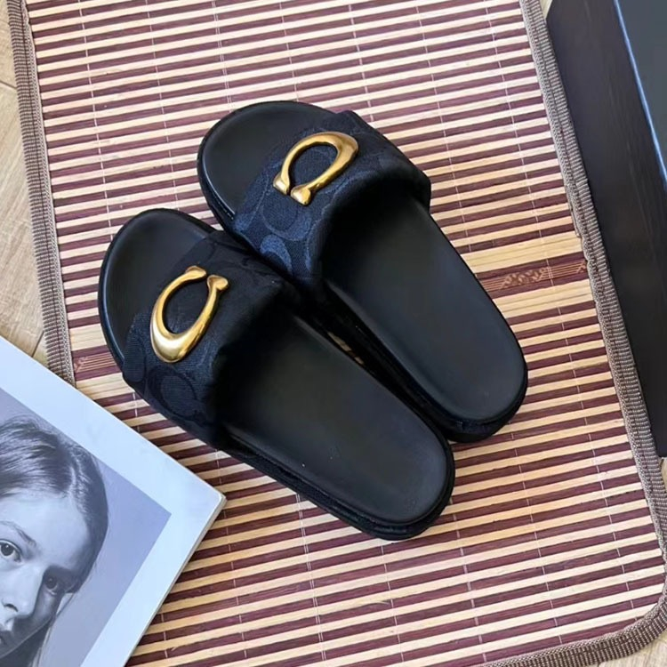 Coach platform sandals with metal buckle and canvas upper-5624