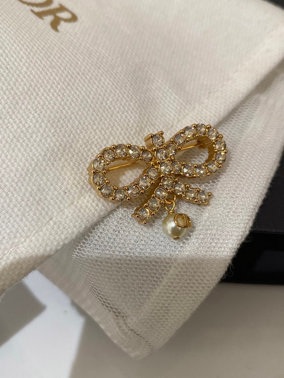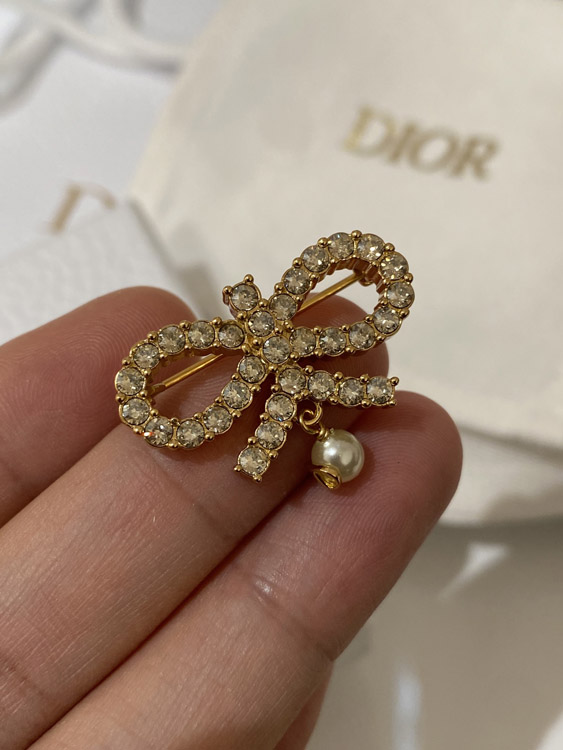 Dior full diamond bow hanging bead brooch-3954