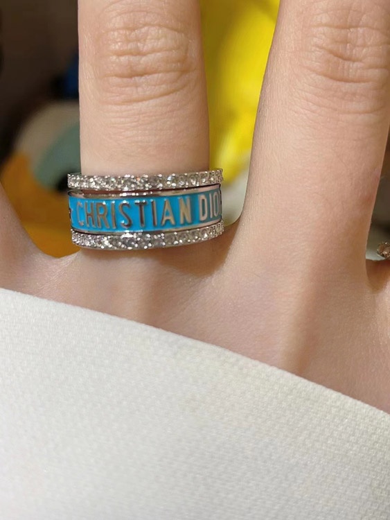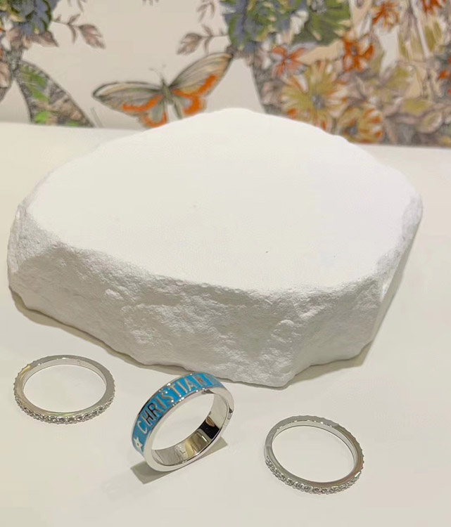 Dior gold letter blue enamel diamond ring set three-piece set-3710