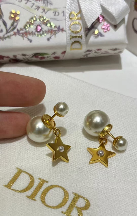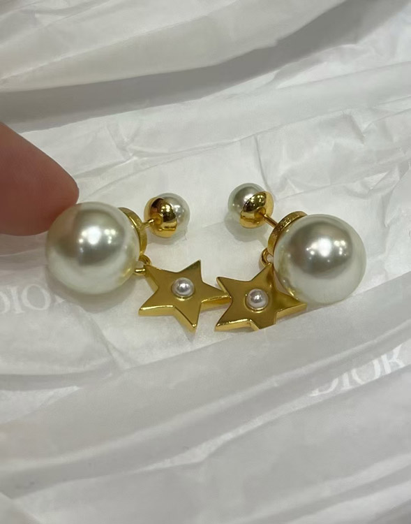 Dior gold star pearl double ball earrings-3707