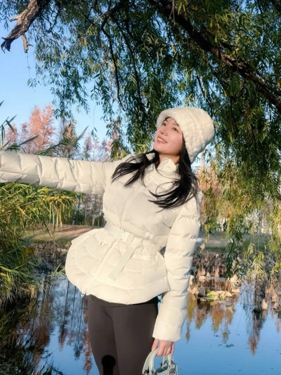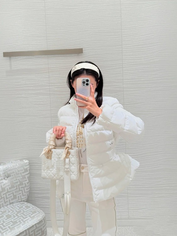 Dior new design stand-collar zip-up down jacket with a belted waist-5388