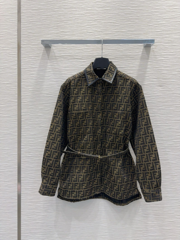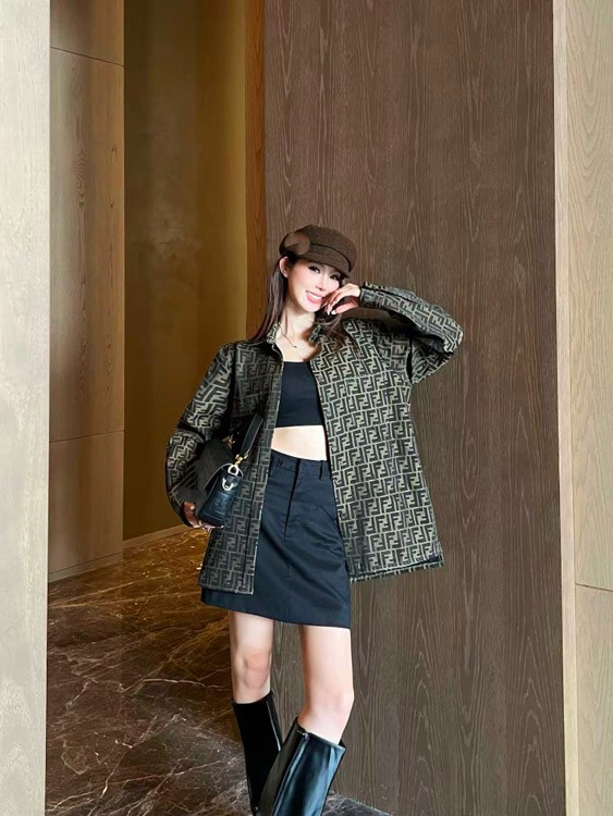 Fendi new jacquard letter collar patchwork fitted jacket-5362