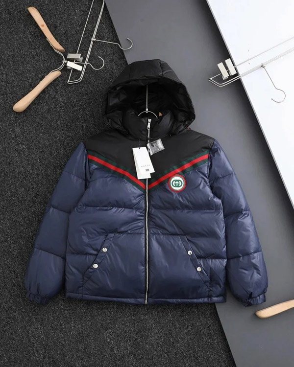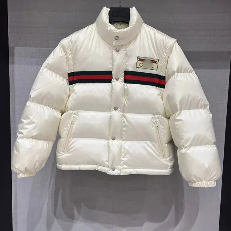 GUCCI Logo label striped webbing quilted detachable sleeves aviator down jacket-4265
