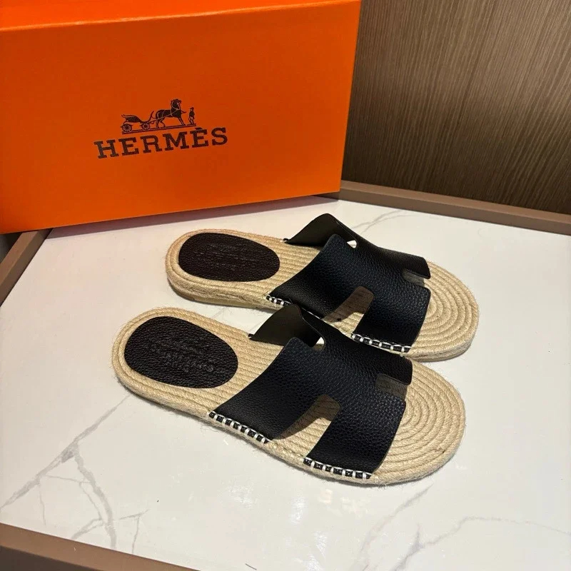 HERMES Antigua Suede Round-Toe Slip-On Sandals-5137