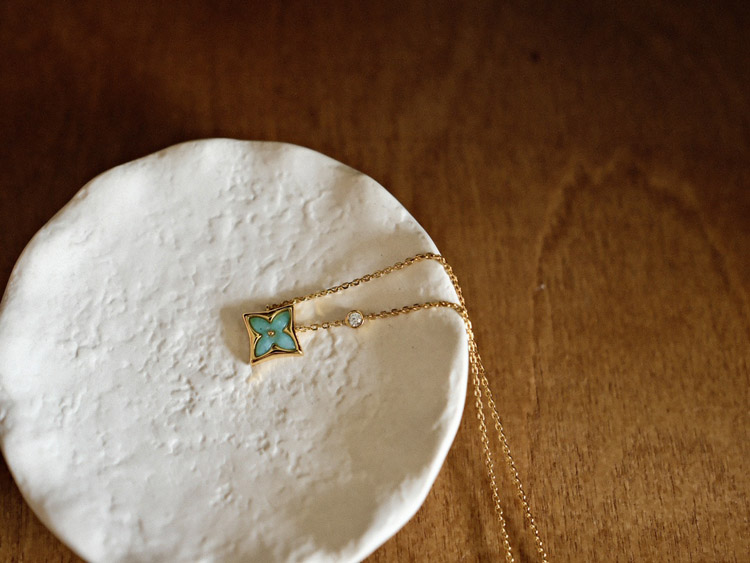 Louis Vuitton LV Amazonite Single Flower Necklace-3614