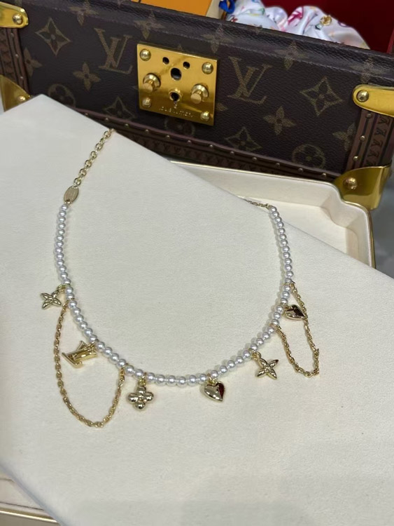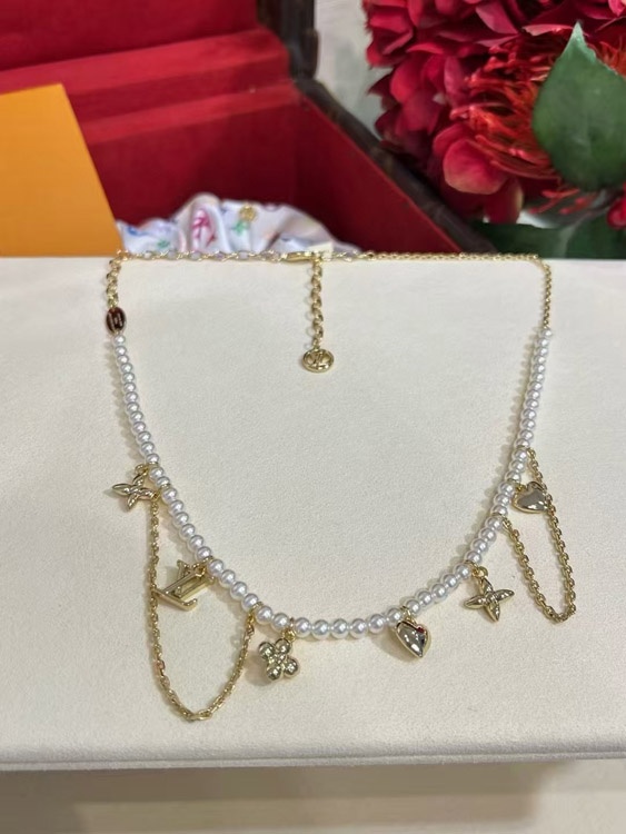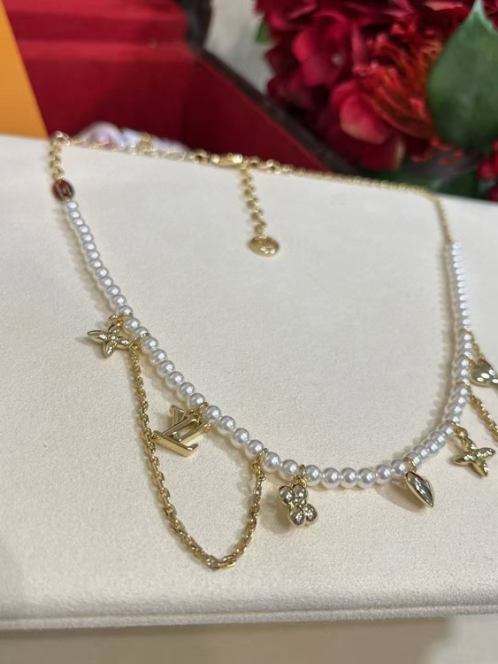 Louis Vuitton LV Gold Letters Old Flower Pearl Necklace-3721