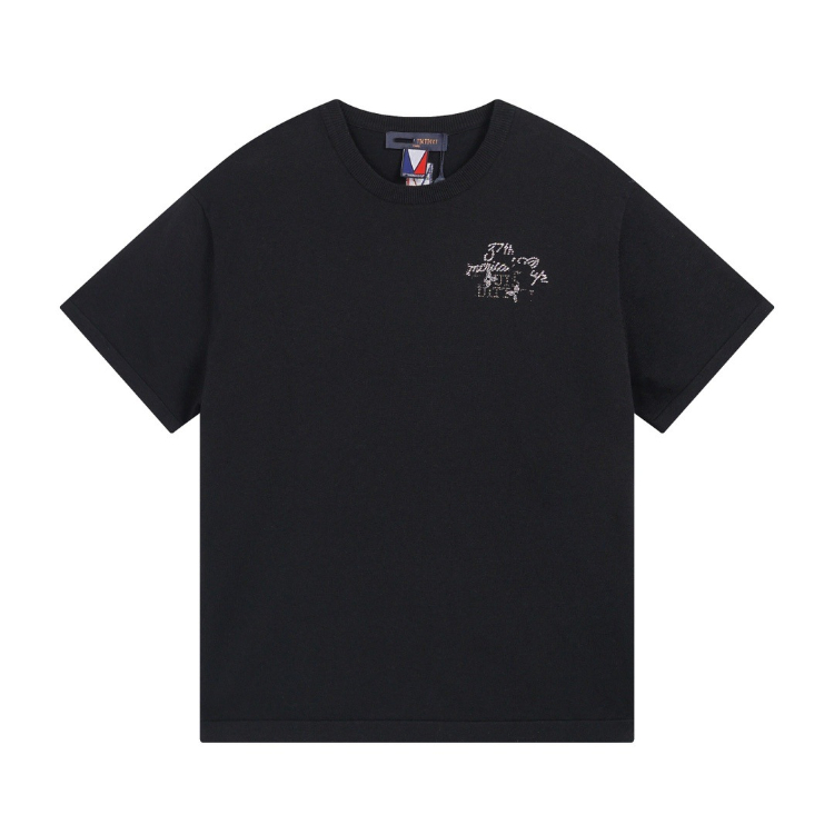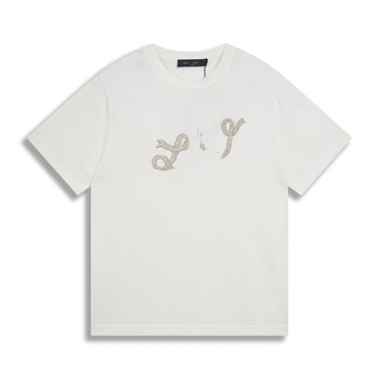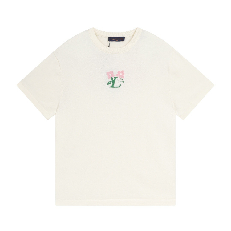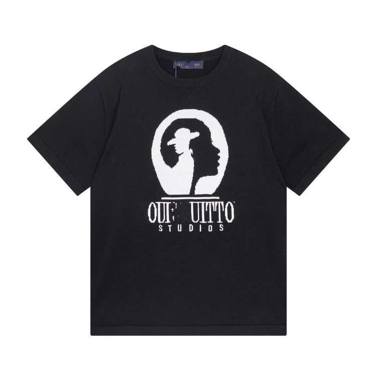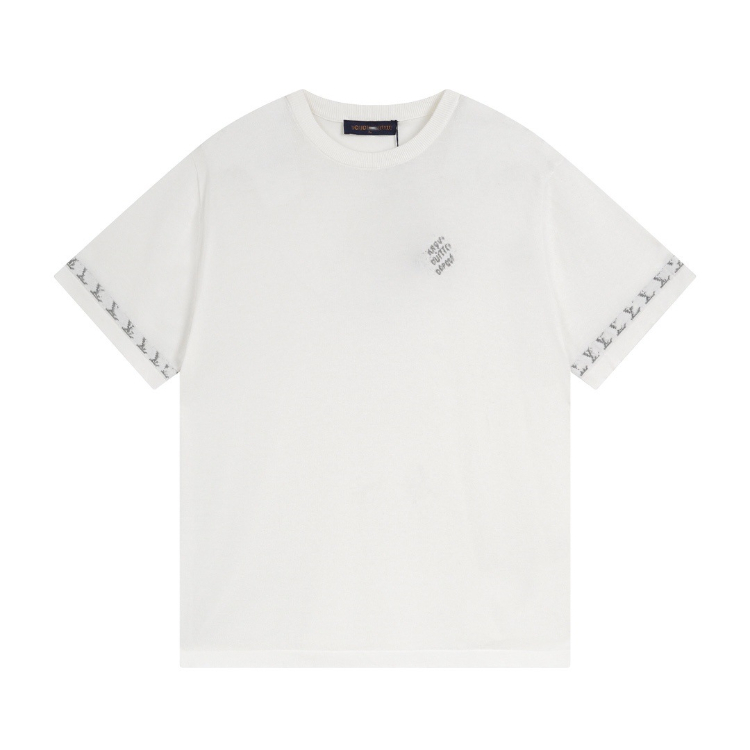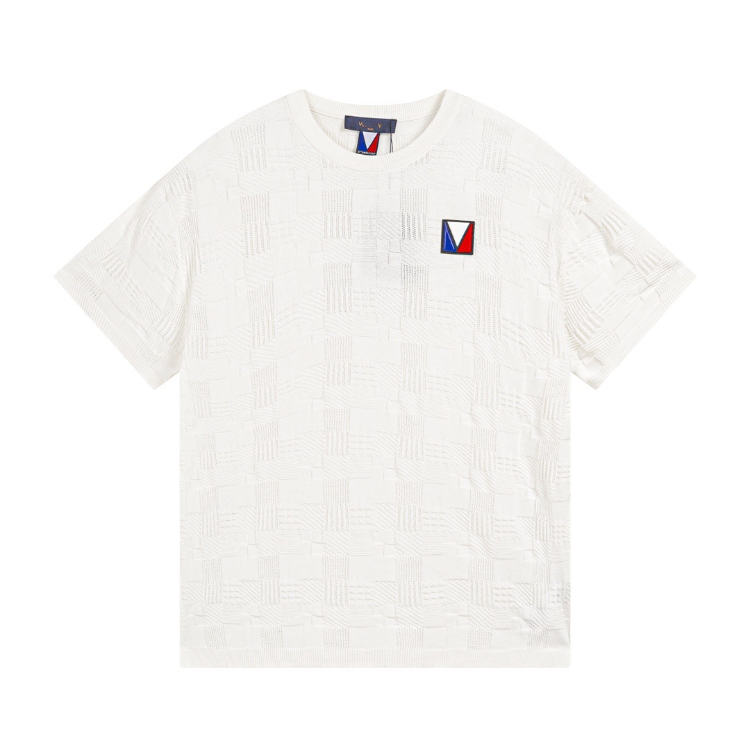 Louis Vuitton LV knitted checkerboard pattern letter jacquard casual loose short-sleeved T-shirt-5308