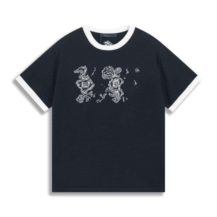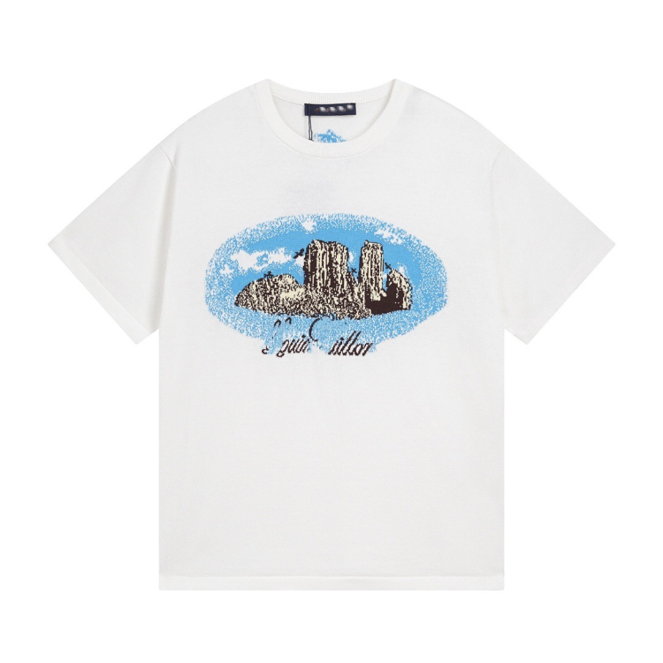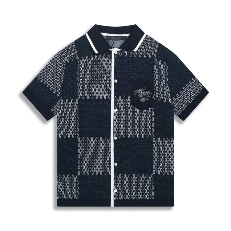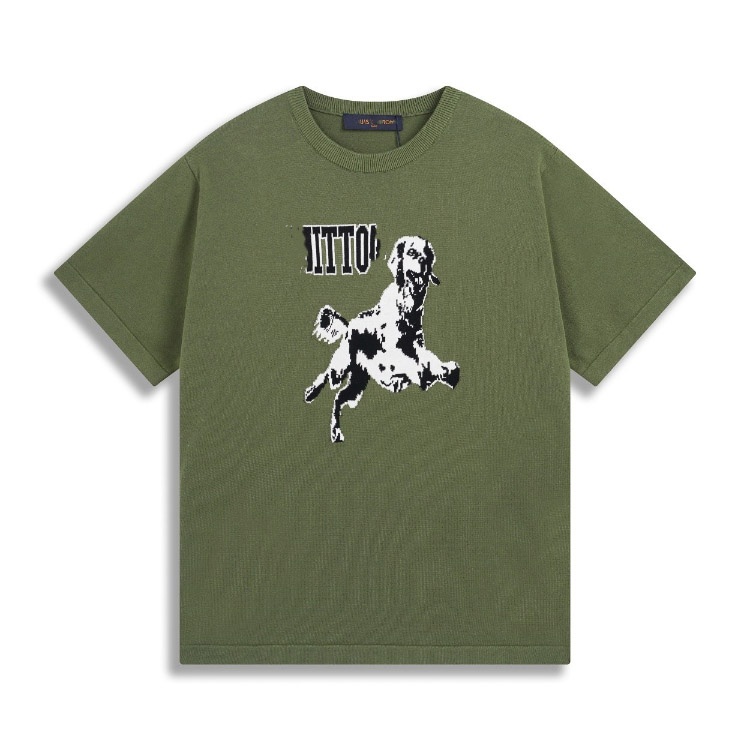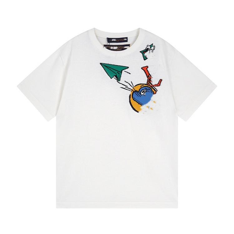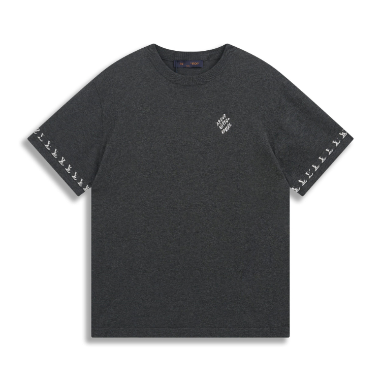 Louis Vuitton LV knitted checkerboard pattern letter jacquard casual loose short-sleeved T-shirt-5308