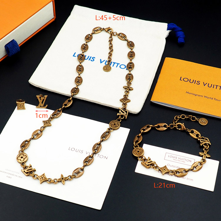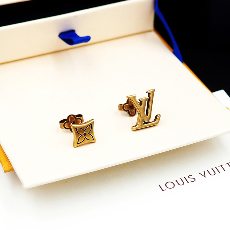 Louis Vuitton LV Letter Floral Brass Distressed Earrings-3575