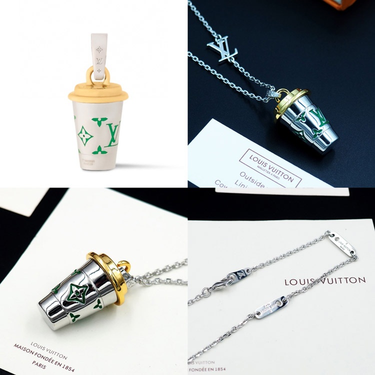 Louis Vuitton LV Letter Floral Enamel Inscription Miniature Coffee Cup Necklace-3915