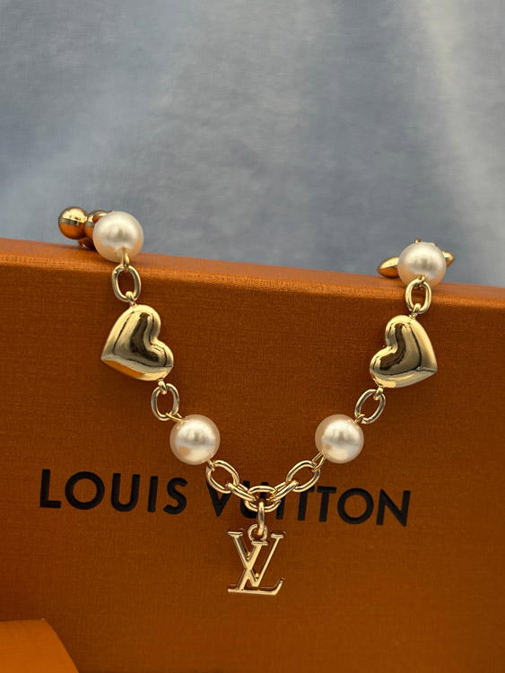 Louis Vuitton LV metal chain embellished with letters, flowers, heart-shaped pearl bracelet-3886