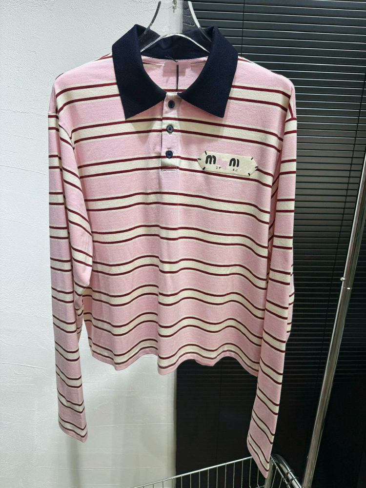 Miu Miu's new collared patchwork casual versatile polo shirt T-shirt-5371