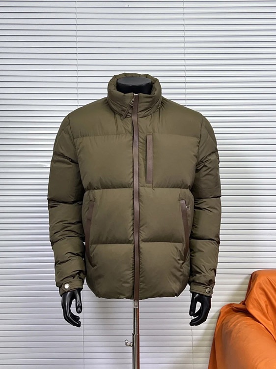 Moncler leather zip-up down jacket with concealed hood-5055