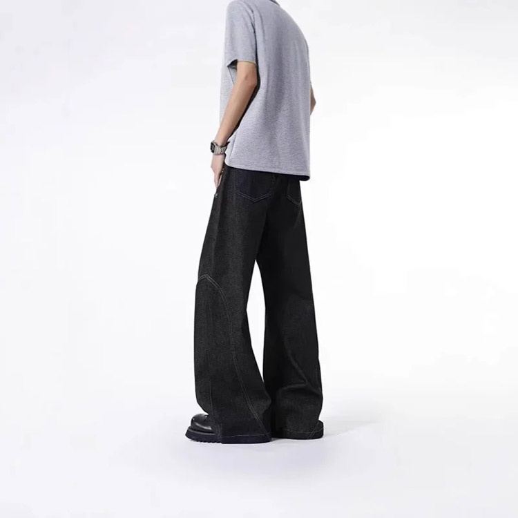 Onenin's new raw color jacquard wide-leg jeans-4904