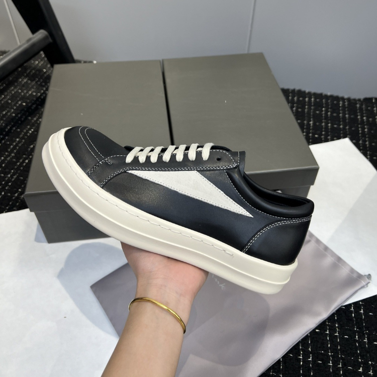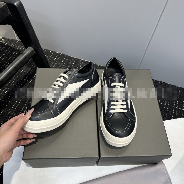 Rick Owens platform black and white lace-up low-top shoes-5716