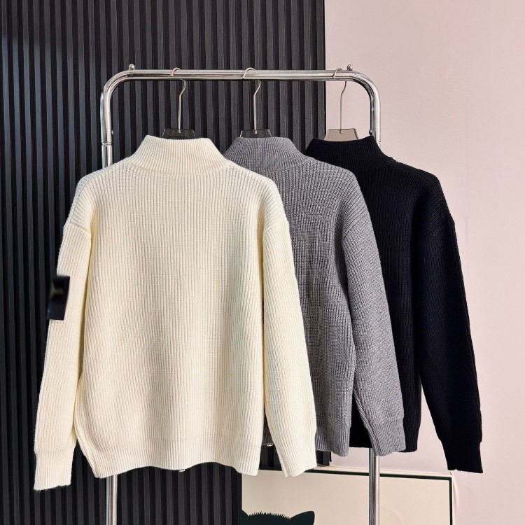 Stone Island loose-fitting knitted cardigan sweater with zipper closure-5233