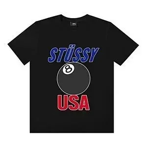 Home > Stussy Black 8 embroidered short-sleeved polo shirt loose casual short-sleeved T-shirt-2817