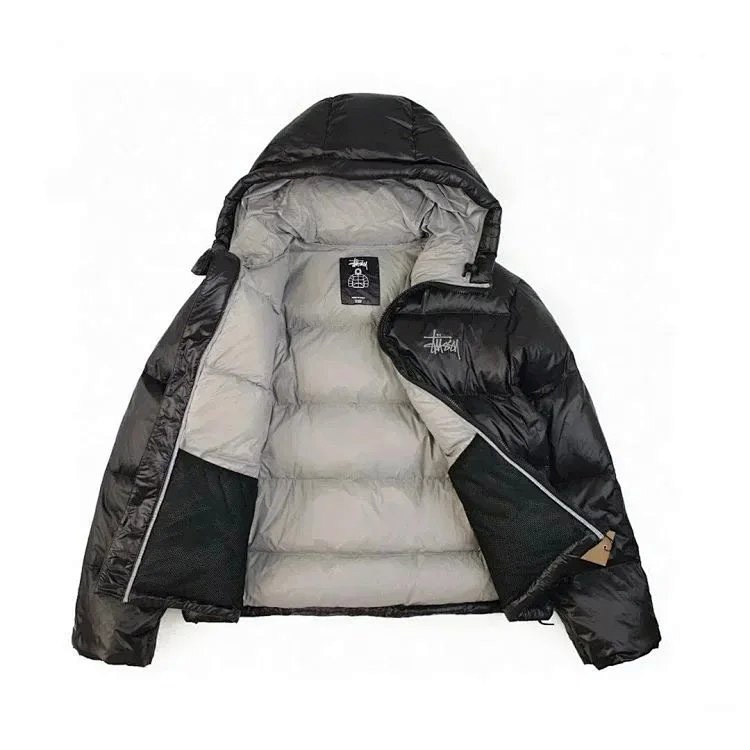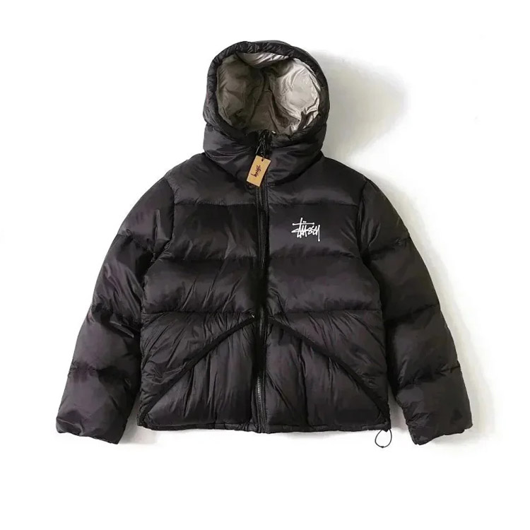 Stussy Micro Ripstop Down Parka Solid Color All-match Zipper Hooded Short Down Jacket-4351