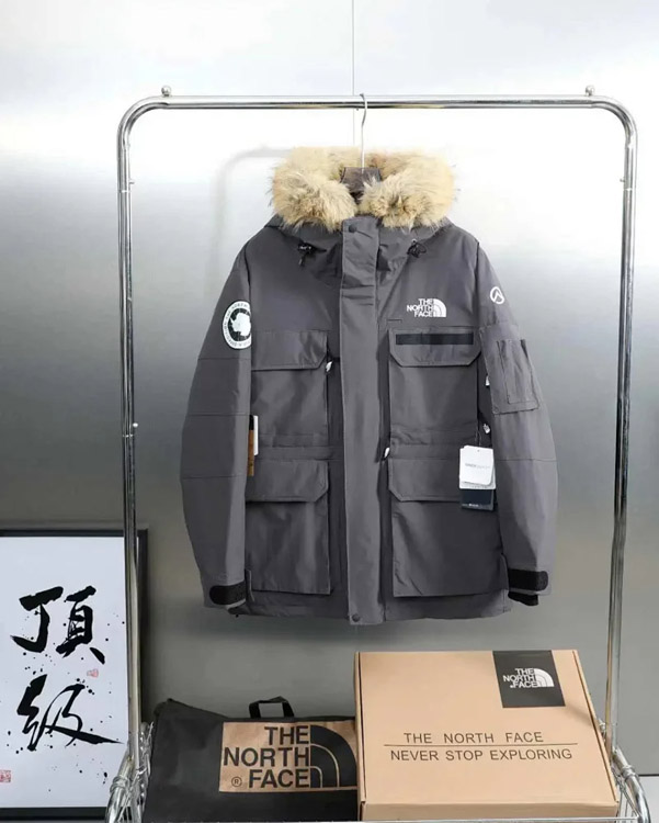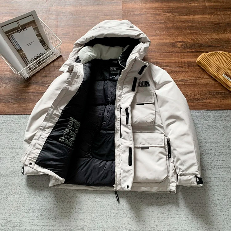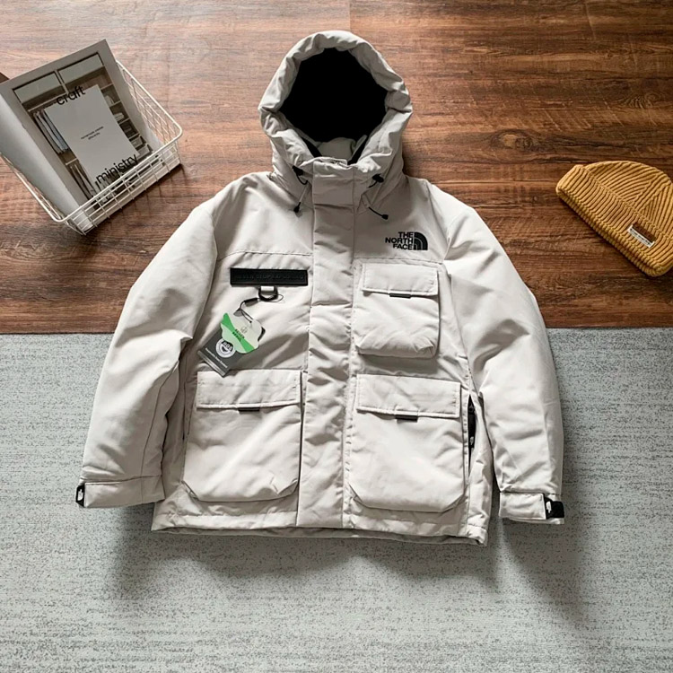 THE NORTH FACE solid color logo logo multi-pocket drawstring hooded cotton jacket-4274