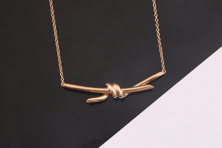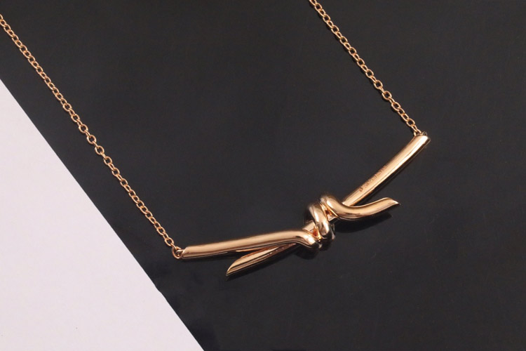 Tiffany rose gold bow necklace clavicle chain-3677