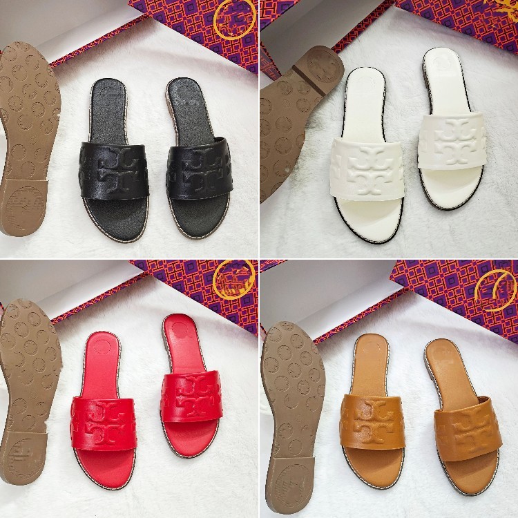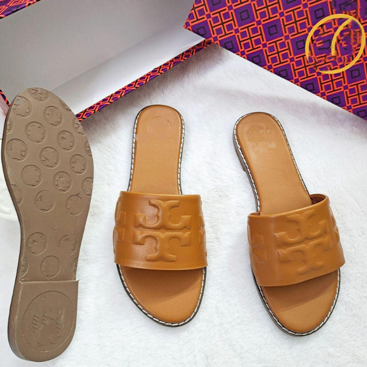 Tory Burch new all-leather flat slide sandals-5663