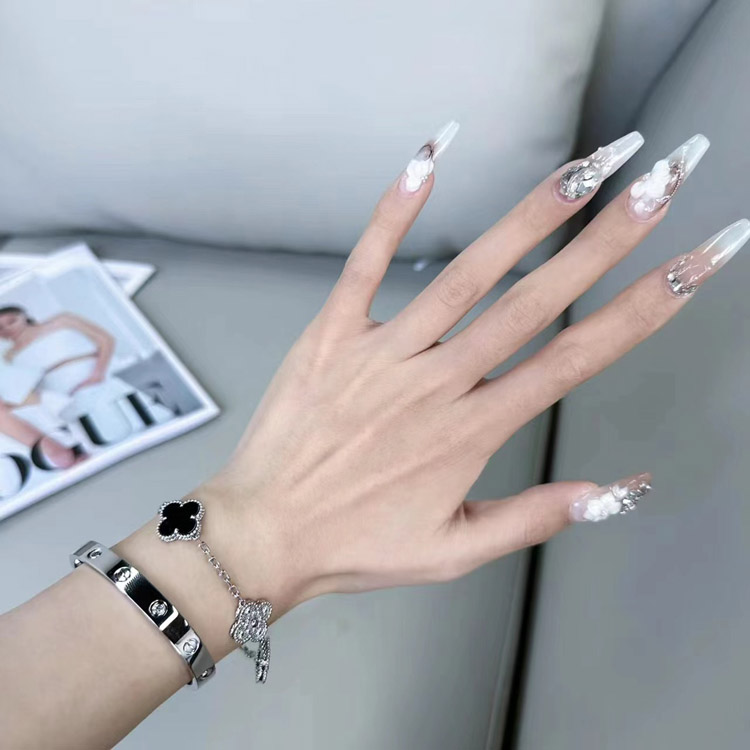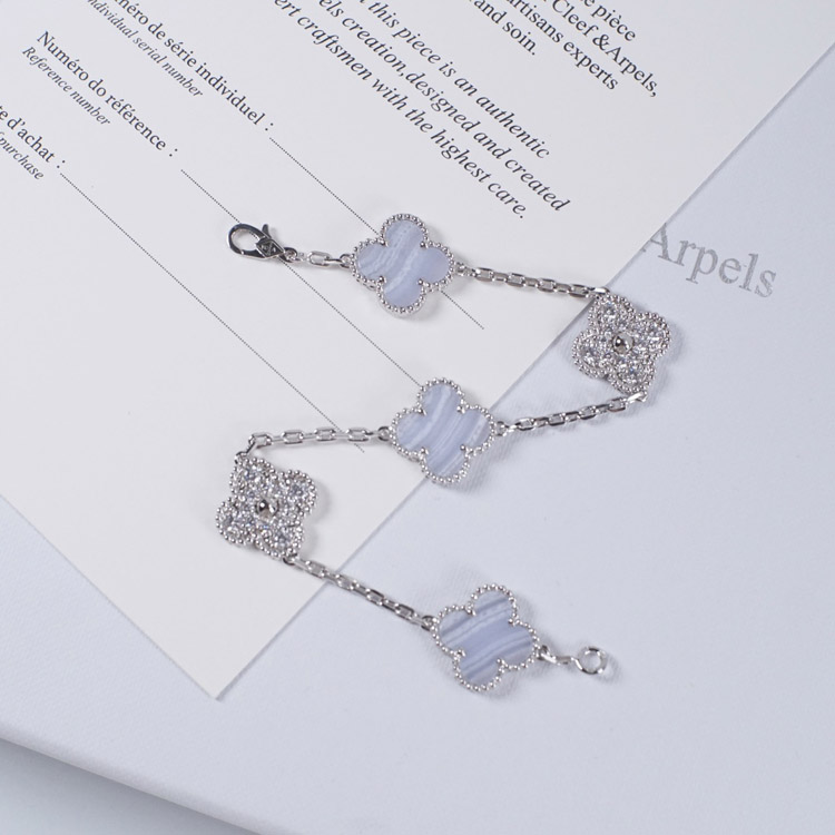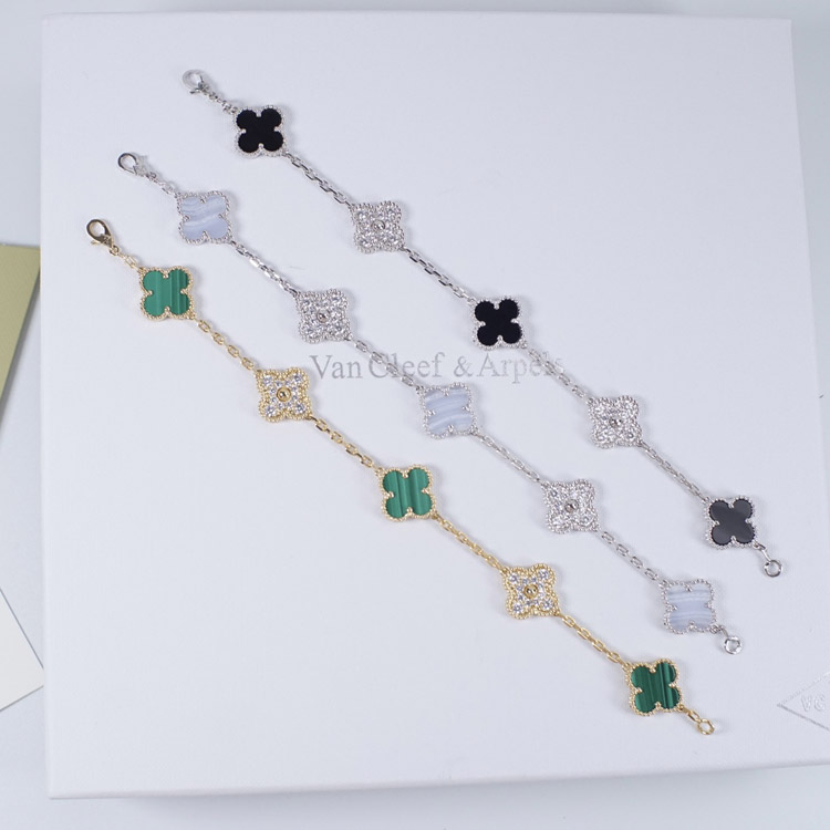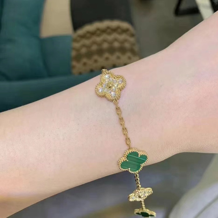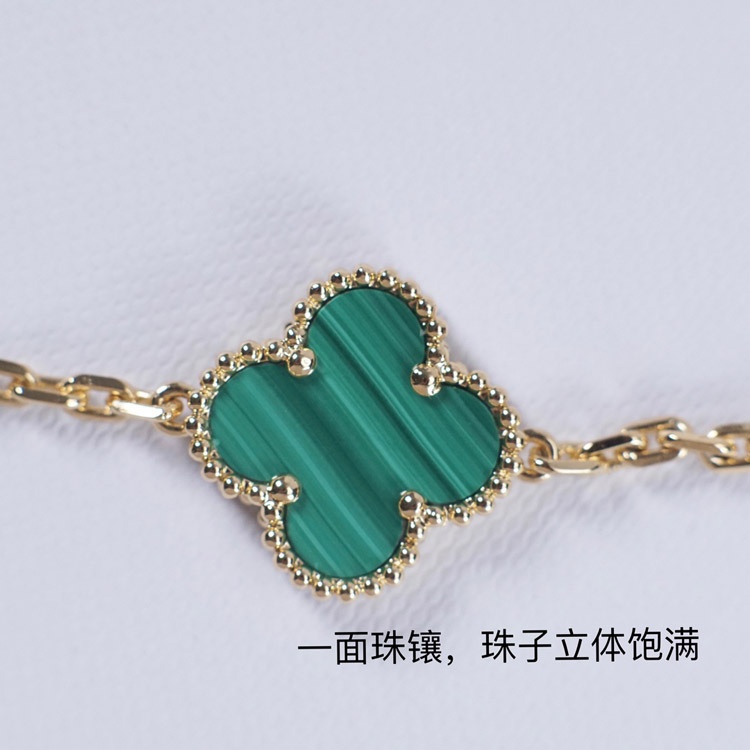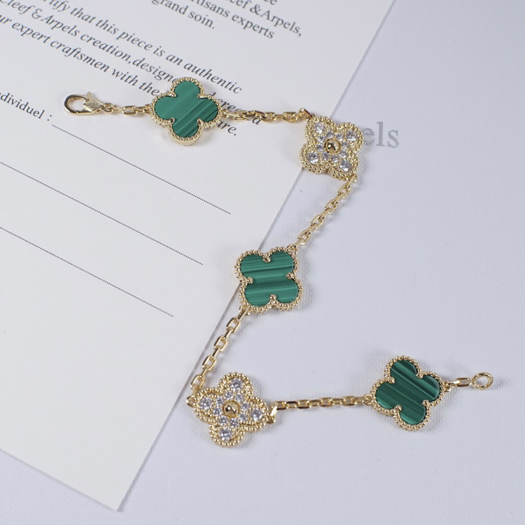 Van Cleef & Arpels inlaid diamond malachite green flower white and black five flower bracelet-3699