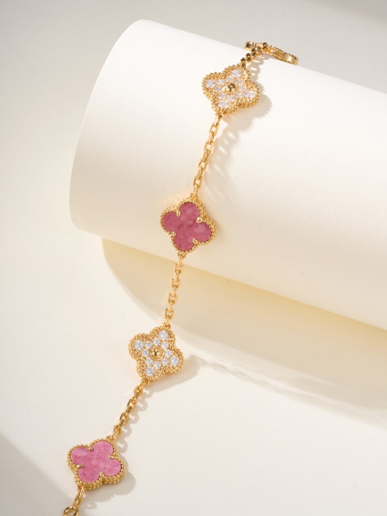 Van Cleef & Arpels pink diamond rose stone five flower bracelet-3903
